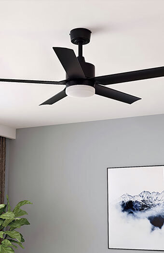 Professional installation of new ceiling fans in bedrooms, living rooms, patios and offices with options for standard fans, modern low-profile designs, and custom mounting heights.